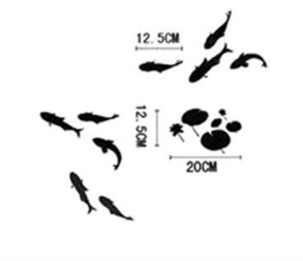 INK Fish Design Background Free Style GREY Color Wall Sticker Decal Set