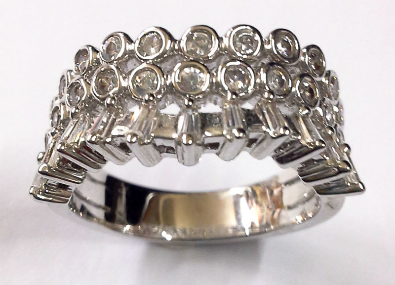3 Roll CZ Filled Stone Platinum Sterling Stainless Silver Color Ring