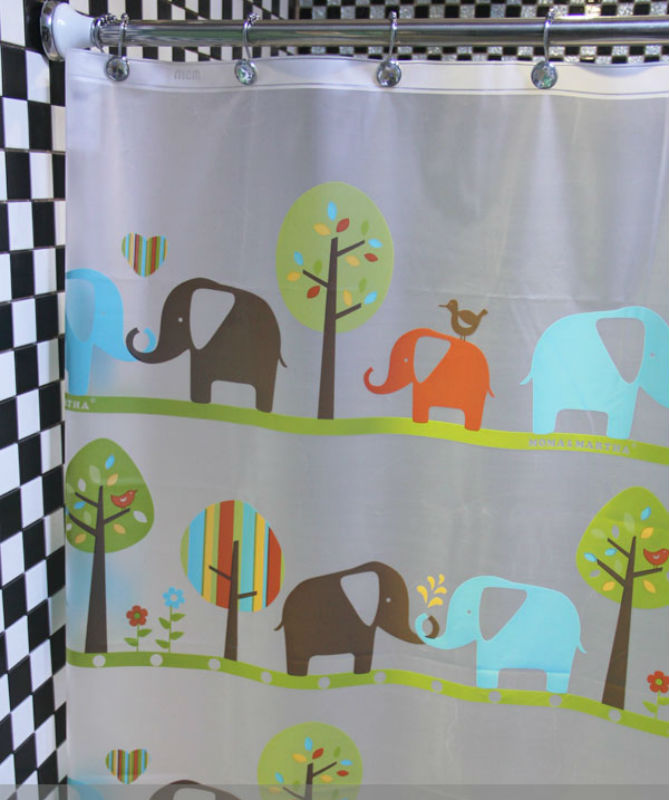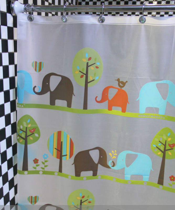 Elephant Cute Cartoon Design Jungle Design 180 x 200 cm Bathroom SHOWER CURTAIN